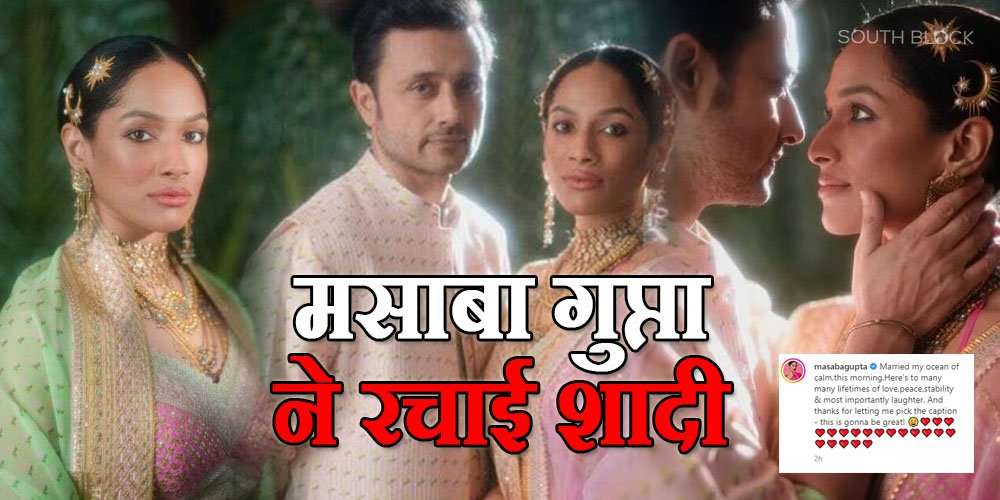 मसाबा गुप्ता ने हाल ही में अपने इंस्टाग्राम पर अपनी शादी की तस्वीरे शेयर करते हुए इस बात की जानकारी अपने फैंस को दी है। वहीं मसाबा ने पोस्ट के साथ अपने कैप्शन में लिखा, ‘आज मेरी मेरे प्यार मेरी दुनिया से शादी हो गई है। आने वाली जिंदगी में नाम  प्यार, शांति, ठहराव और सबसे जरूरी है मुस्कान। आपका बहुत-बहुत शुक्रिया कि आपने मुझे कैप्शन चूज करने दिया…यह जिंदगी काफी मजेदार होने जा रही है।‘ उनकी इस गुपचुप शादी से उनके फैंस हैरान जरुर हैं, लेकिन फिर भी सभी दोनों को उनकी आने वाली लाइफ के लिए बधाई दे रहे हैं।